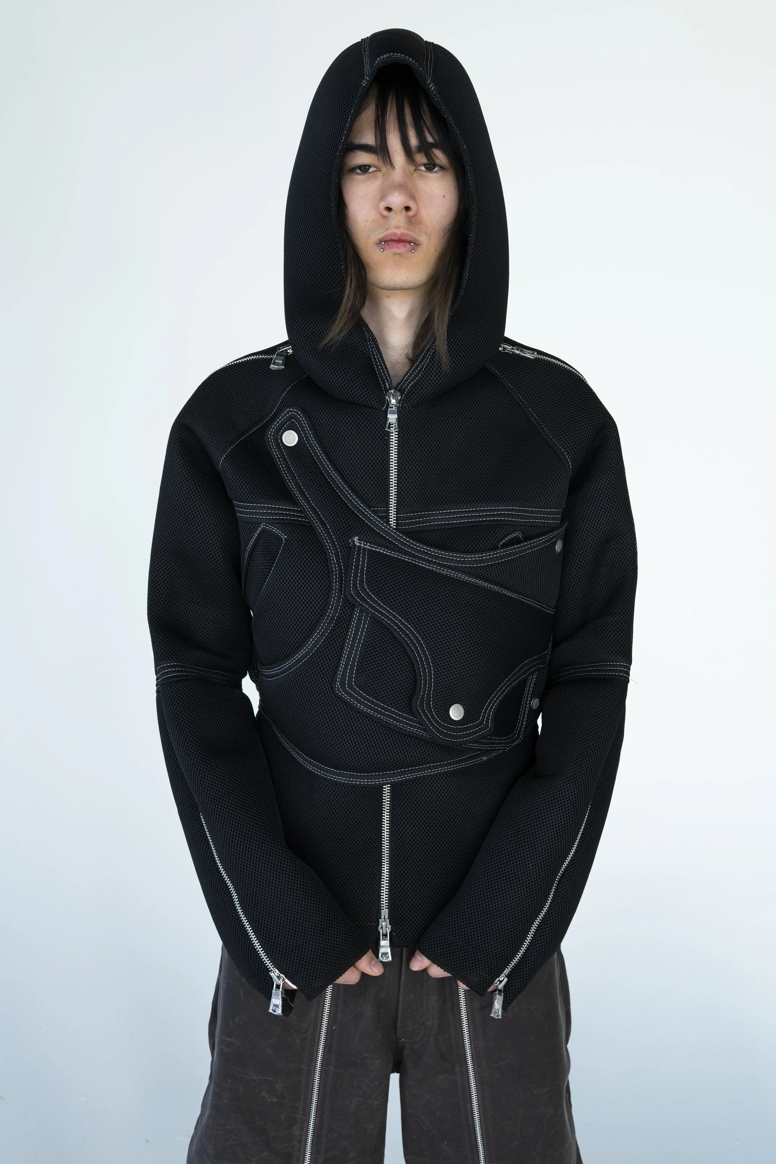 2-way zipper runs from hood to torso