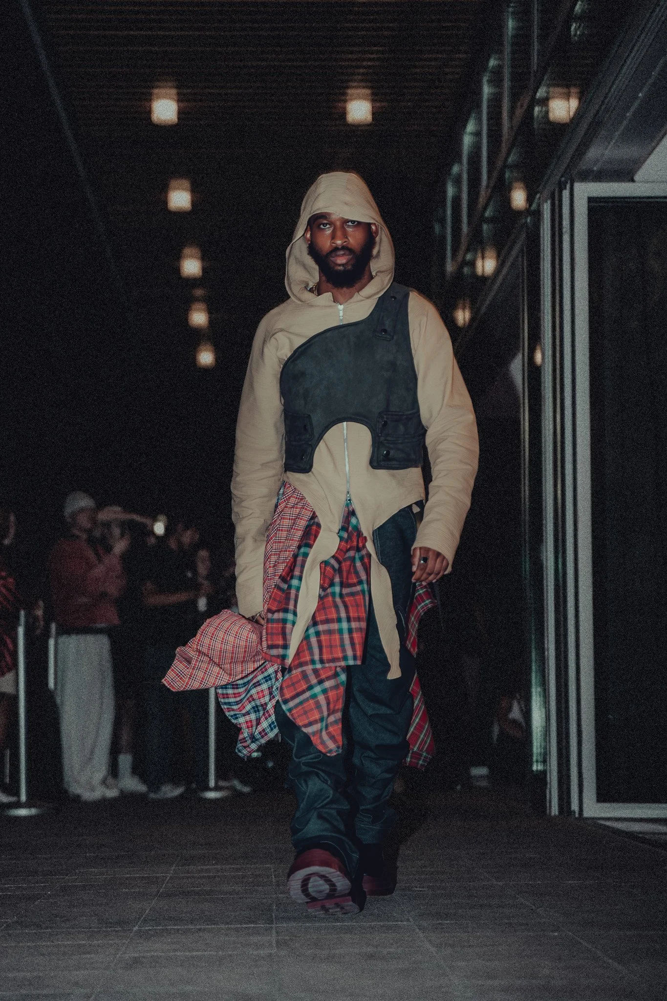 2-way zipper runs from hood to right shoulder